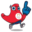 Una figura roja con forma de gorro frigio, con ojos azules grandes, una boca, pantalones azules, tenis blancos con detalles rojos y azules y brazos
